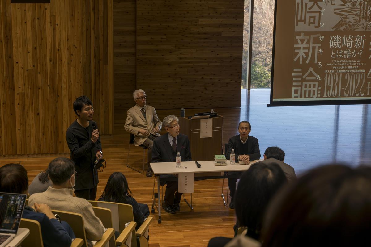 前半は第1回永井荷風文学賞を受賞した田中純氏が『磯崎新論(シンイソザキロン)』(講談社、2024)についての基調発表を行い、『磯崎新論』を読み込んできた高校生たちや、建築に関心がある学生たちとの活発な質疑応答がありました。