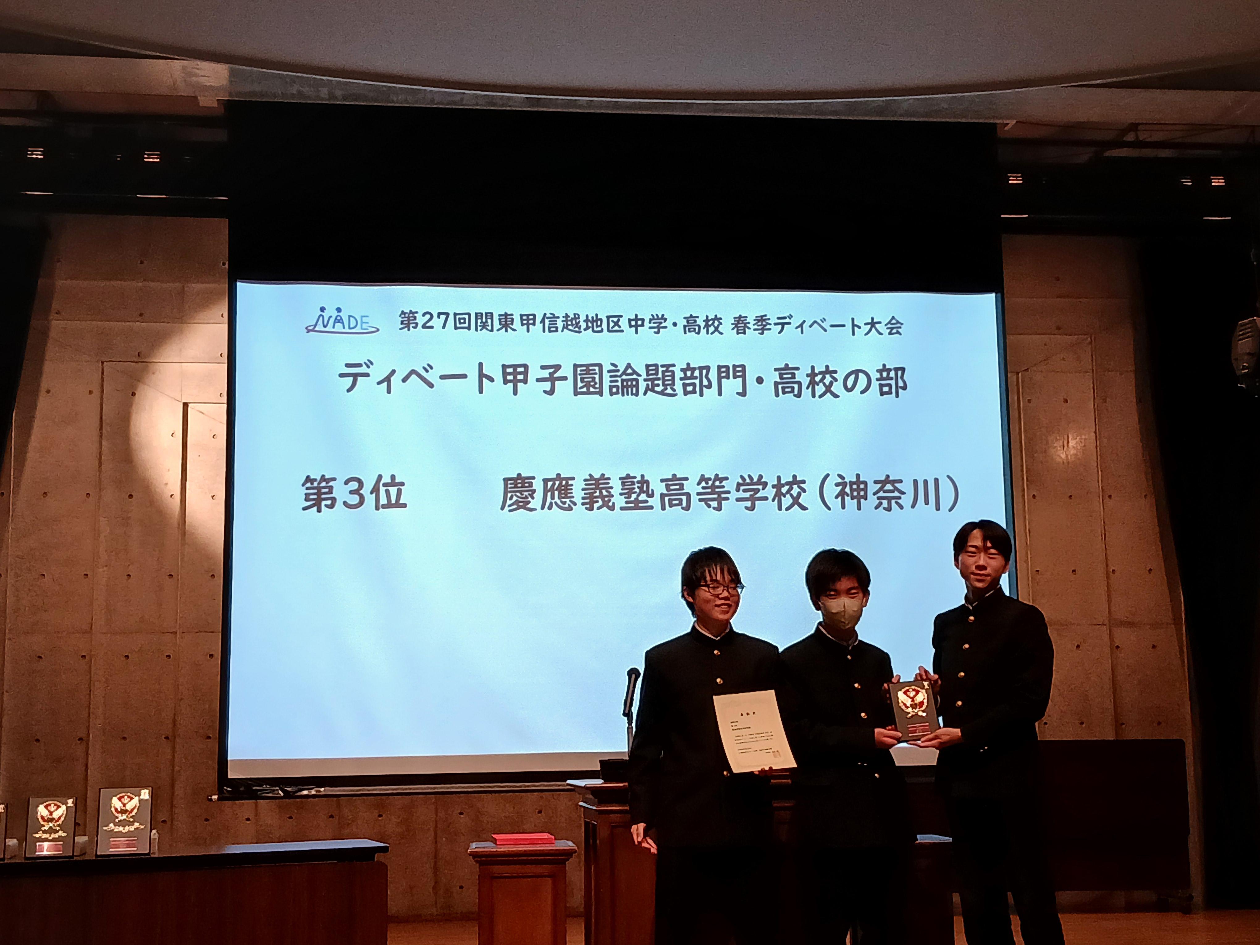- ディベート部、春季関東甲信越地区ディベート大会で3位